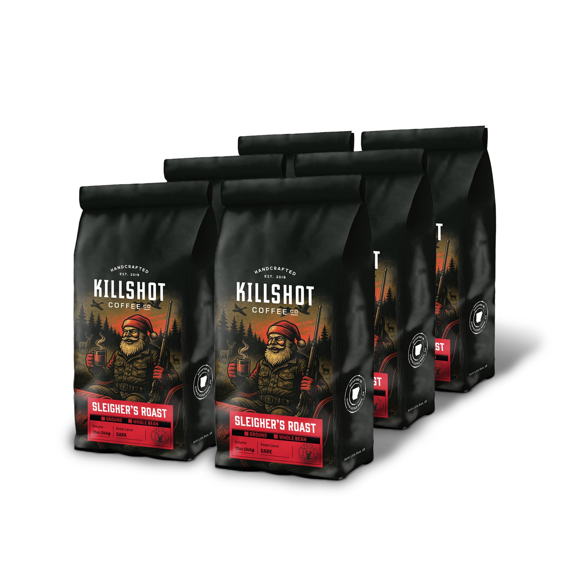 Between duck flights in the morning and a whitetail track in the evening, our Sleigher Santa slays ‘em all, dusk till dawn. He also loves to top off his thermos with a bold, dark roast forged from our best Brazilian beans—roasted in the USA for a clean, smooth, downright delicious cup.